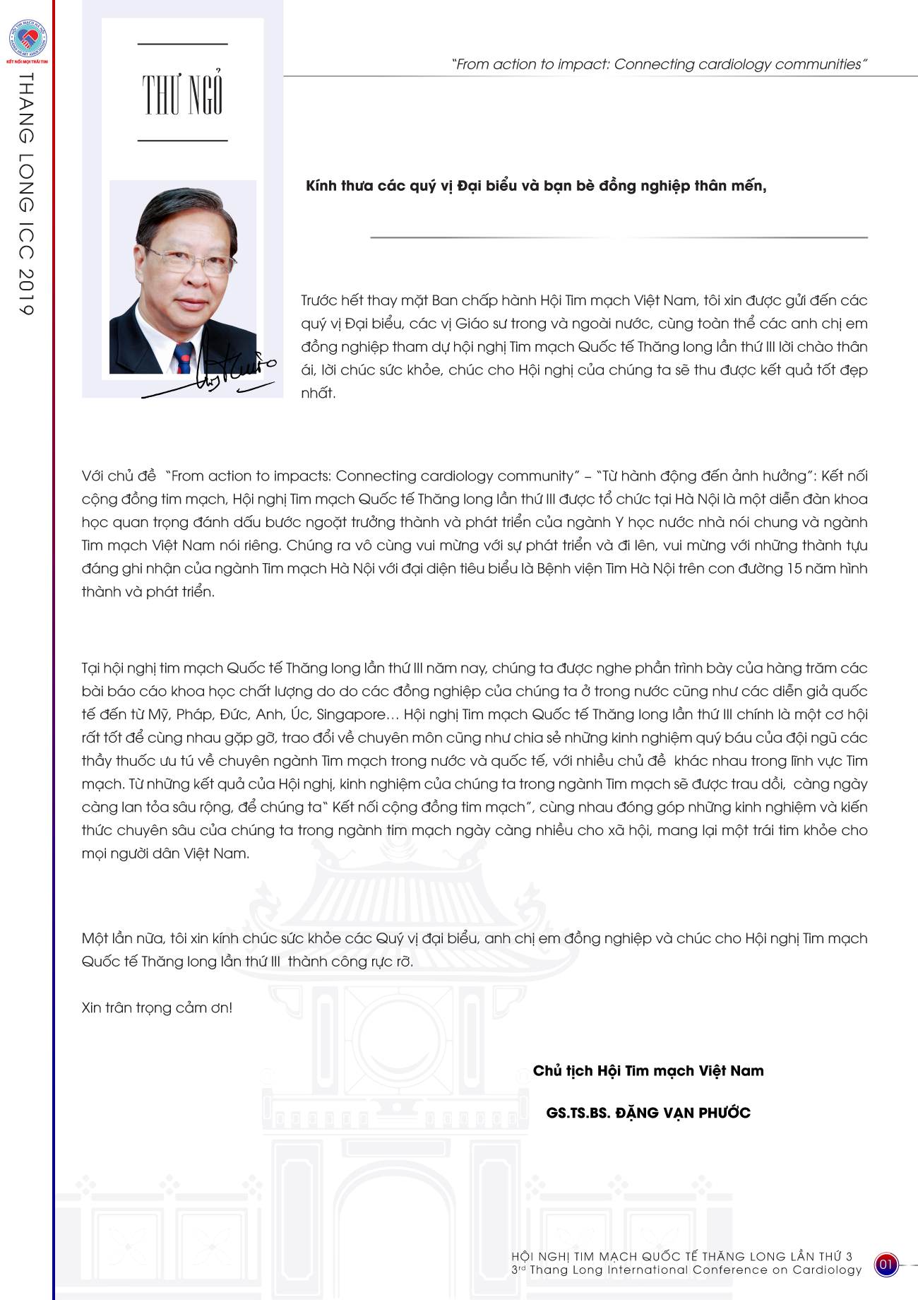 Thư Ngỏ (GS.TS.BS. Đặng Vạn Phước) - Hội nghị Tim mạch Quốc tế Thăng Long lần thứ 3